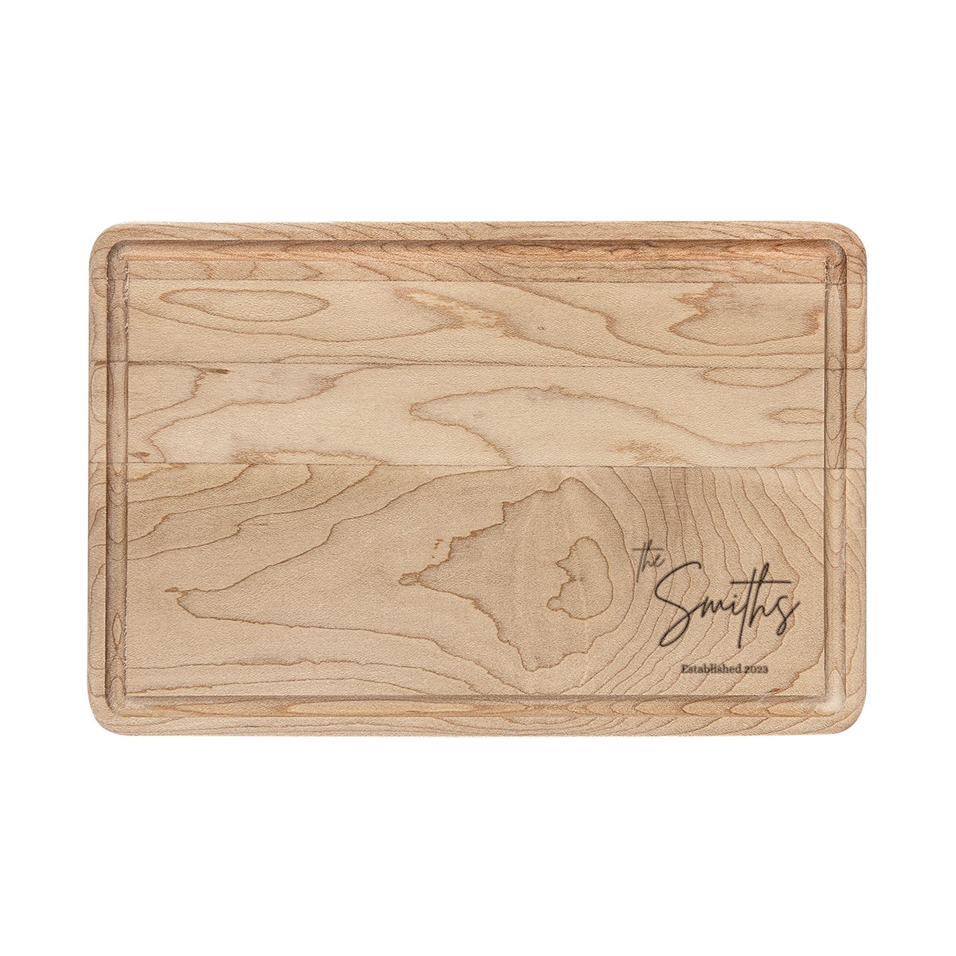 Timeless and meaningful, our Classic Family Name Cutting Board adds a personal touch to any kitchen or gathering space. Featuring an elegant script-style engraving, this board is perfect for showcasing a family name, established date, or special phrase. Crafted from sturdy, high-quality wood, it’s ideal for both everyday use and decorative display. Whether given as a wedding, anniversary, or housewarming gift, this customized cutting board is a beautiful way to celebrate the heart of the home.