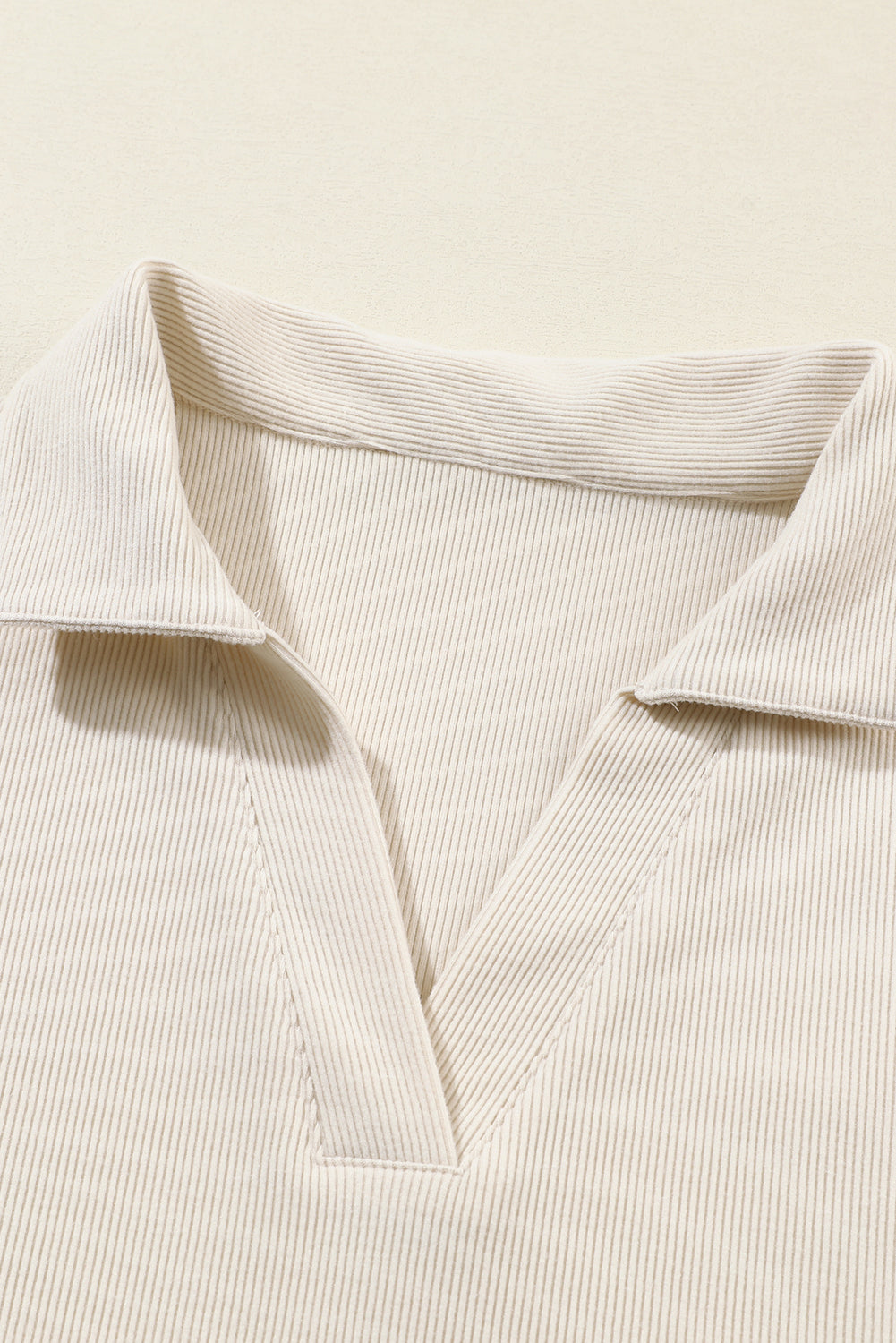Timeless, soft, and effortlessly refined, the Cream Luxe Ribbed Set is a must-have for elevated everyday style. Designed with a classic polo pullover featuring button-cuffed sleeves and a flattering neckline, this two-piece outfit exudes understated sophistication. The matching loose-fit pants drape beautifully, offering all-day comfort with a sleek silhouette. Crafted from high-stretch ribbed fabric in a chic solid hue, this set delivers a perfect balance of comfort and class, loved by women of all ages.