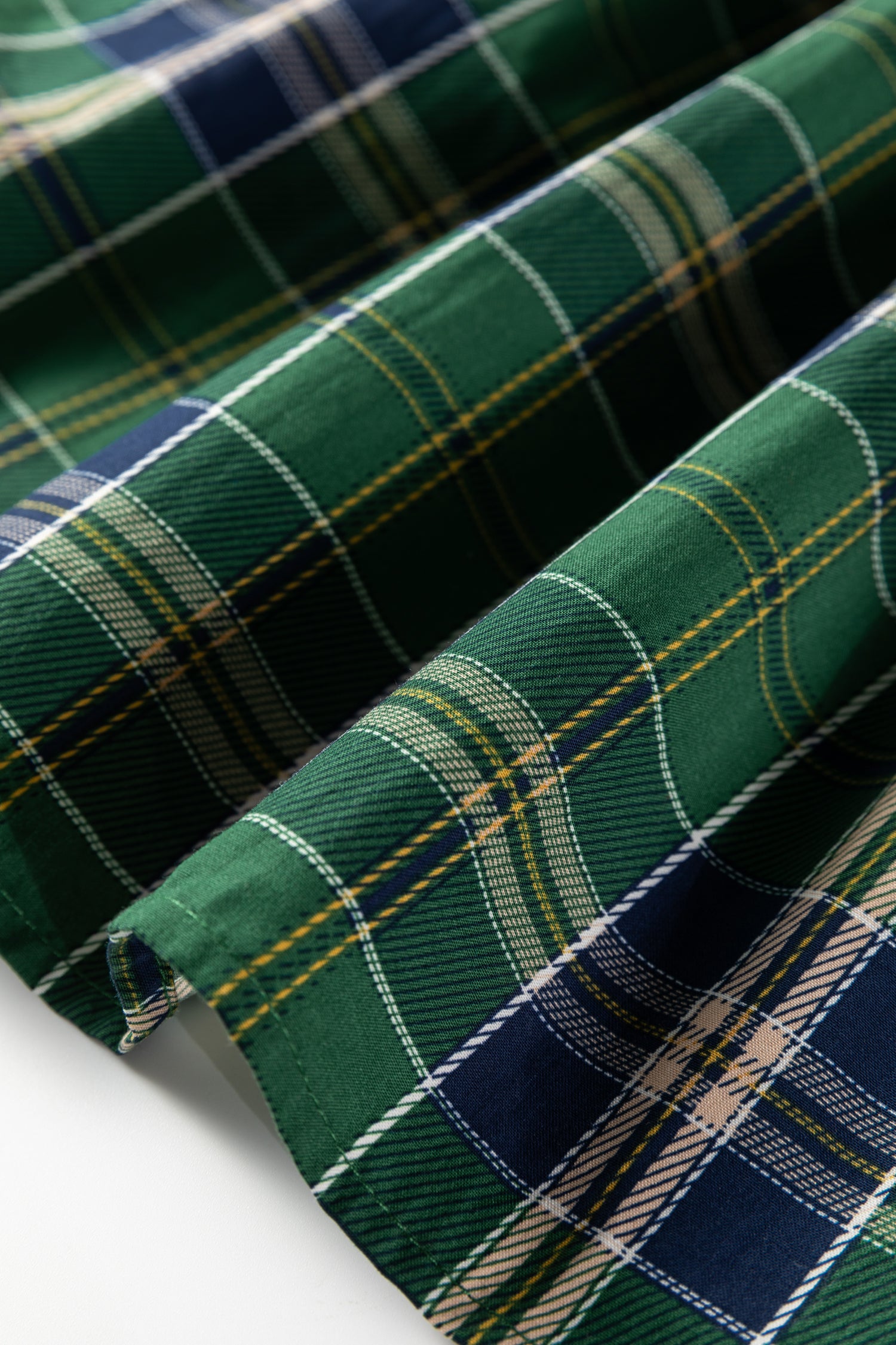Bring timeless charm to your holiday wardrobe with the Evergreen Plaid Tiered Mini Dress. This plus size dress features a classic green plaid pattern that’s both festive and sophisticated. The frilled collar with a split V-neckline adds a touch of femininity, while the puff sleeves and tiered silhouette create a flattering, flowy fit for all body types. Perfect for seasonal gatherings or everyday wear, this dress blends comfort, style, and effortless elegance.