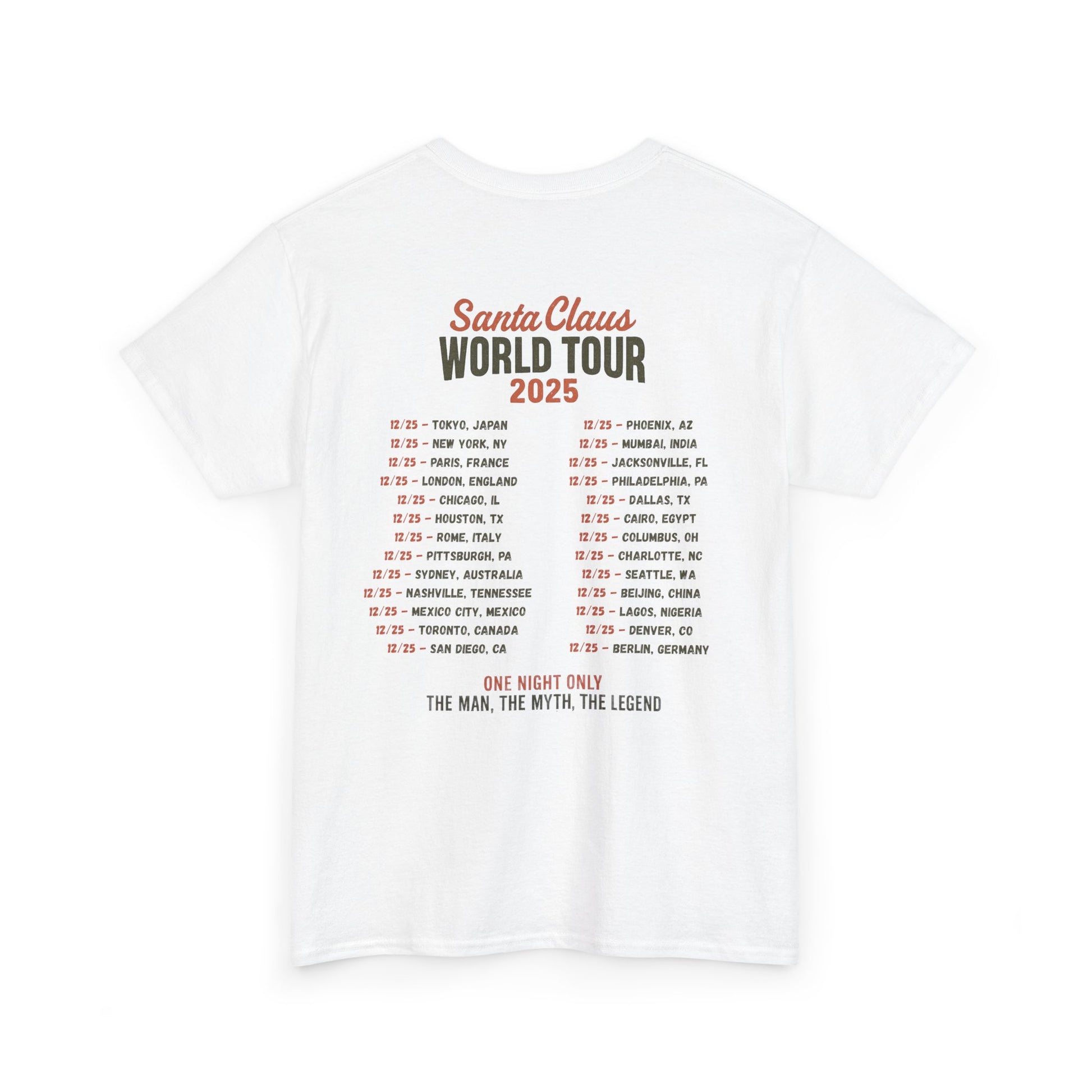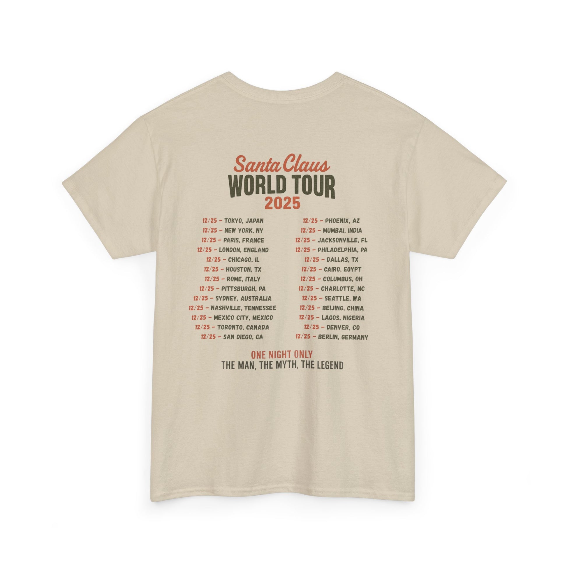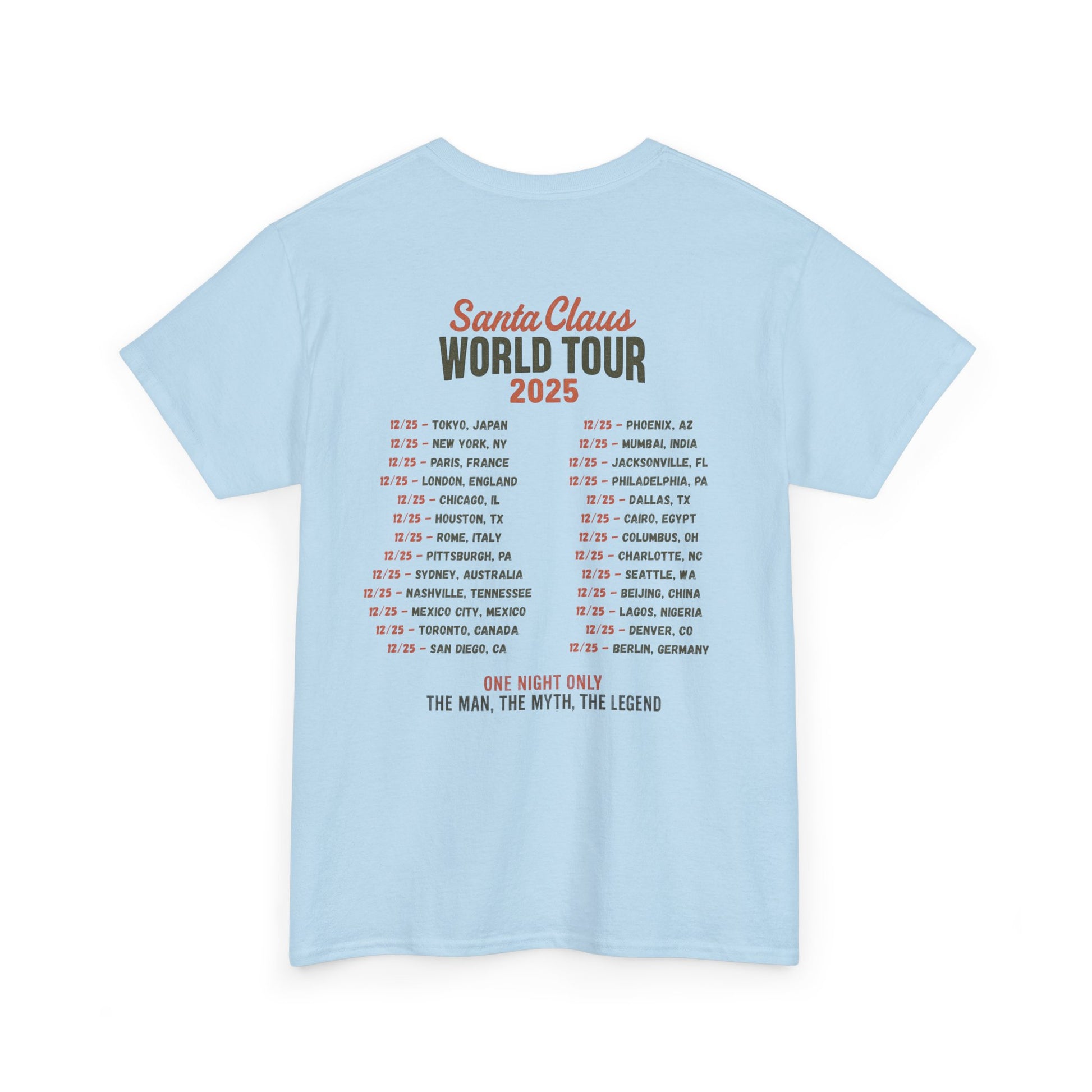 Rock around the Christmas tree in style with our Santa Claus World Tour Graphic Tee! Featuring a retro-inspired design of Santa shredding on guitar, this festive favorite is printed on the classic Gildan 5000 heavy cotton tee for lasting comfort and color. Made from 100% ethically sourced cotton, it’s soft, durable, and perfect for spreading holiday cheer all season long. Available in White, Sport Grey, Sand, Natural, Gold, Light Blue, and Light Pink. Note: White may appear slightly off-white due to fabric properties.