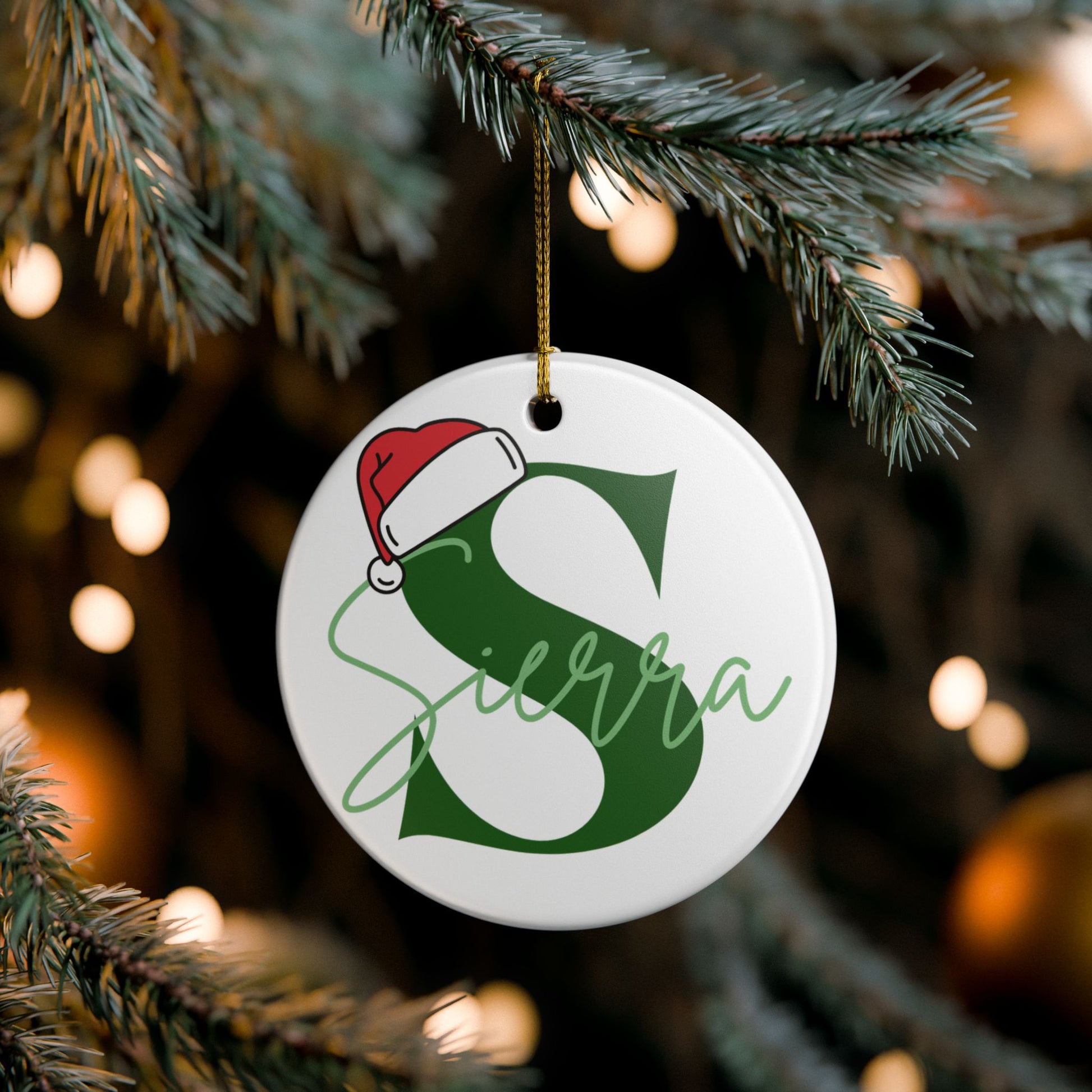 Add a festive touch to your tree with our Santa Hat Initial Christmas Ornament, personalized just for you! Crafted from 100% white ceramic with a glossy finish, this ornament features your chosen initial and name in a classic script design; available in red or green. The playful Santa hat detail brings an extra dose of holiday cheer, making it the perfect gift or keepsake. Each ornament includes a golden string for easy hanging, and a mockup will be sent for approval before your custom piece is created.